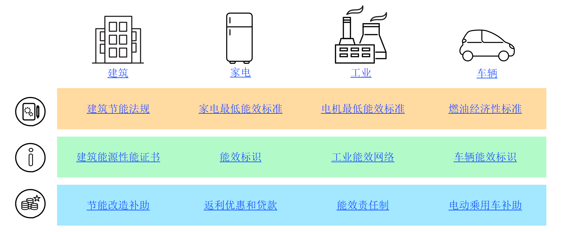 IEA針對建筑、家電、工業和車輛等部門和領域的能效,通過《能效政策工具包2024》發布了由其開發的首批共12項“倍增政策工具”,并提供了包含更多詳細信息的內/外部鏈接。接下來一年,IEA預計還將納入更多政策工具,屆時《能效政策工具包》文件也將隨之更新。